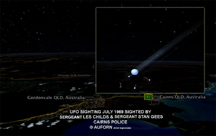 Now on our way back we got a call to nature we got out of the car along a very quiet road going up to west Cairns and the sky was clear you could see for miles. While we were relieving ourselves all of a sudden there was well Stan called out to me, hey Les what's that up there and I could see a big silver streak coming through the sky.