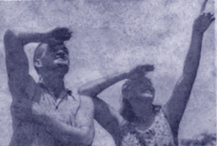 Witnesses included a Toowoomba photographer. Mr. Norman Miller. The object was reported above an area about 40 miles south of Toowoomba. 'Brightest' First sighting came from Mr.Tom Hoey, who has a farm 10 miles from Clifton. "It appeared as the brightest star in the sky," Mr. Hoey said, "But it was closer to the earth than is the moon. "It was very large, very bright and was fringed on one side by an orange glow." Mr Hoey telephoned The Sunday mail at 10.30a.m yesterday. He said the mystery object then was sill visible, and had not moved since his 1 am sighting. Mr. Hoey, "It's clearly visible overhead, but it has now risen very high. "About 3.30 a.m. a smaller duller light started to move slowly away from the larger one. It changed course several times, and finally disappeared below the horizon. "The smaller light seemed to be quite close." Mr. Hoey said he had not seen the smaller light return to the main object. 'Something' Mr Norman Miller went to the spot for The Sunday Mail. The object was defined clearly, he said. Mr. Miller said: "There was definitely something there, it looked like a shinning disc. A neighbour of Mr. and Mrs. Hoey, Mr Bruce Burge, described it was "a large white disc. An Air Force spokesman at Amberley Air Base said yesterday the R.A.A.F airfield - approach radar there lacked the ranger needed to pick up the Clifton object. The Queensland Flying Saucer Research Bureau president (Mr. R Royal) and another member left Brisbane for Clifton yesterday afternoon to investigate. Didn't see Toowoomba Aero Club pilots could not see the object yesterday afternoon. They were flying below cloud which` extended up to 10,000ft. Mrs. Roy Farley of Abbott Street Ascot last night reported seeing a "Brilliant", electric-blue object in the north-west at 7.20 p.m on Thursday. It had a five-feet-long tail. Mr. John Teunissen, of Bald Hills and his brother Robert saw a "What pear shaped object," stationary between Warwick and Toowoomba at about 2.a.m yesterday. |