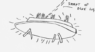 He sent messages to call the local natives, and kept a watch on the strange objects. he had a notebook and pencil in his pocket. While he watched he made hurried notes. Just before seven o'clock he saw a man-like figure moving about the top of the object. Then this figure was joined by two others. His rough notes, made on the spot, read:- P.M. 6.55 Now thread man - moving glowing, doing something on the deck. Gone. |