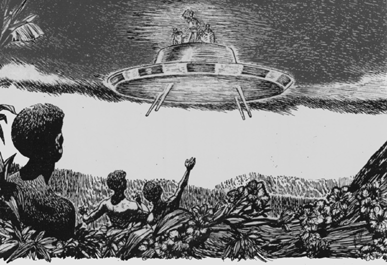 | "The teacher and I began waving and all four figures now seemed to wave back. " "There seemed to be no doubt that they were answering our movements. I heard the mission boys gasping." "Dark was beginning to close in sent Eric Kodawara for a torch and directed a series of long dashes towards the unidentified object. "After a minute of two of this, the U.F.O apparently acknowledged by making several wavering motions back and forth. "We repeated the waving, and flashed the torch again, then the | |||||||||||||||||||||