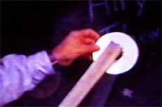 David Sereda uses a simple example to show how an object will look when it passes behind or in front of an object. By holding a compact disc behind a ruler he demonstrates clearly what it should look like on tape…as in fact it does.