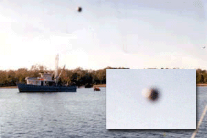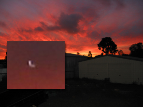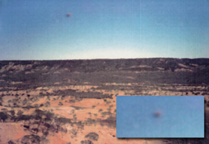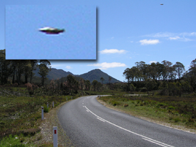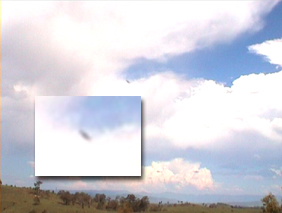 TAZ16: This image was taken 3rd Jan 04 near the Franklin & Alam Rivers Tasmania. The object in the picture was not seen until the photographer down loaded the image to his laptop. This picture is under investigation and results will be posted to this web page. Until then the object will remain an unknown ( an unidentified flying object ) until identified. |