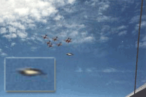 T12:This is a very impressive photo it looks like a flotilla of UFOs but after a little investigation they were found to be parachuters on a night jump with lares. (identified) |