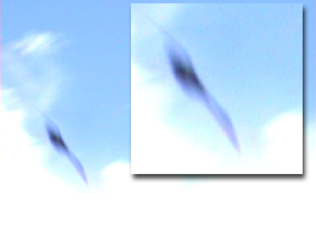 T6 NZ: This picture was sent in from New Zealand it has all the characteristics of the T2 image, is it a bug a spider or a bird. The photographer did not see the object when taking the picture which leads us to think it could be of a natural terrestrial origin, but it will remain ( an unidentified flying object ) until identified. |
